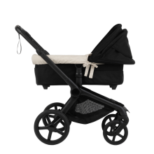 This is our carrycot cover for the Bugaboo Fox, Cameleon and Donkey. Minimal, just the way we like it. It fits perfectly in the carrycot and adapts both with or without the footmuff cover, thanks to its side ties and elastic edge. It covers the entire carrycot and goes under the mattress, so we recommend getting the ma