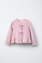 Chemise à col rond et manches longues. Fermeture boutonnée devant dissimulée par un rabat et décor de petits nœuds. Décor volant en bas.