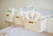 Les paniers suspendus sont parfaits pour ranger, par exemple, les couches ou les linges de toilette, mais aussi les jouets.