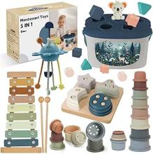 Jouet Bebe 6 Mois et Plus,5 en 1 Jouet Montessori,Jeux Sensoriel Bebe avec Tri de Formes et Empilement,Xylophone,Jeu de Corde à Tirer silicone,Gobelets Empilables,Cadeau Bébé 6 9 12 Mois 1 2 3 Ans : Amazon.com.be: Jouets