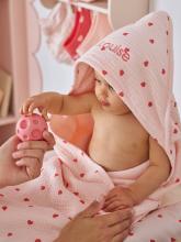 Cape de bain + gant de toilette MON COEUR rose imprimé -