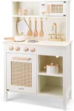 Il est temps pour une bonne tasse de café ou de thé ! Avec cette machine à café en bois, les petits baristas peuvent eux-mêmes moudre des grains, insérer des capsules de café et remuer leur boisson avec une cuillère. L'ensemble comprend deux tasses, deux cuillères, un pot à lait, des cartons de lait et même des pochoir