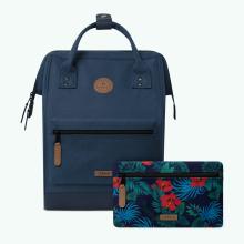 Vegan backpack with a lifetime warranty, wide-angle anti-theft opening, suitcase attachment strap, anti-sweat padded shoulder straps, easy-to-clean waterproof bottom and many other ingenious features! This bag comes with 2 switchable pockets: Aqua + Lemon print