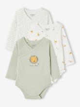 Lot de 3 bodies assortis "lion" bébé spécial naissance en coton biologique - vert d'eau, Bébé