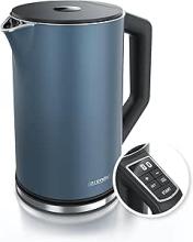 Edelstahl Wasserkocher mit Temperatureinstellung 40-100 Grad in 5er Schritten - Doppelwand Design - Modell ELEGANT - 1,5 Liter - 2200 W - Teekocher mit Temperaturanzeige - GS - Admiral Blau