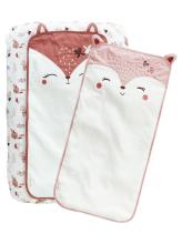 Une housse de matelas à langer avec ses deux tapis de change : pratique pour laver facilement et sans soucis. On adore ces jolis tapis de change rosés en éponge et ses jolis détails trop mignons. On craque, pas vous ? Facilement adaptable à la plupart des matelas à langer en mousse non rigides grâce à son élastique On craque pour les broderies et les petites oreilles paddées sur les tapis de change !