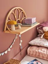 Fixée au mur, cette jolie étagère en rotin aux lignes rétro vous permettra de décorer la chambre et d'y exposer des livres, doudous et petits trésors !