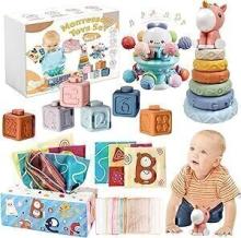 Jouet pour bébé de 6 mois à 3 ans, 4 en 1 Montessori - Tour empilable pour bébé - Blocs de construction en silicone - Jouet sensoriel - Boîte à mouchoirs - Cadeau d'anniversaire pour bébé 6 9 12 mois : Amazon.com.be: Jouets