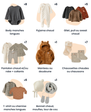 25 pièces pour l'hiver/printemps (chinées tous azimuts) avec des bodies, pyjamas, pulls, bonnets et des jolies tenues.