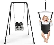 nmoiww Balançoire 2 en 1 pour bébé avec support en métal, ceinture de sécurité, siège à bascule pour l'intérieur et l'extérieur, noire : Amazon.com.be: Jouets