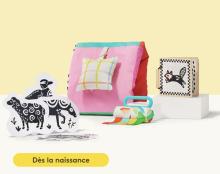 Faites découvrir à votre nouveau-né des textures, des images et des sons qui stimulent ses sens émergents grâce au Mini-Kit Sensoriel pour bébés pour bébé dès 0+ mois.