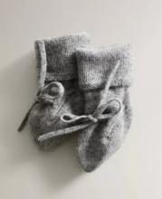 Chaussons pour bébé confectionnés en 100 % cachemire, unis et dotés de rubans à nouer.