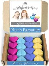 Mum's Favourites Assortiment de 16 fondants de cire parfumée en forme de cœur, parfum Angel x 4, linge frais x 4, lavande x 4, vanille x 4, coffret cadeau pour la fête des mères, 16 x 5 g : Amazon.com.be: Cuisine et maison