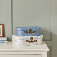 Lot de 2 petites valises de rangement ou de décoration en papier imprimé collé à la main. La plus petite est recouverte de petits cerfs-volants, la plus grande de notre imprimé esprit toile de Jouy. Imprimés exclusifs dessinés par notre équipe de stylistes. Dim. L.29 x H.9 x l.20 cm et L.24,5 x H.8 x l.18 cm env.