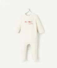 Pyjama en velours mixte naissance blanc "mini nous" - ecru chine | Tape à l'oeil