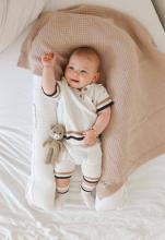 Ce doux Gilet Tricoté est le parfait mélange de style et de confort. Fabriqué en coton biologique doux, ce gilet présente un petit canard brodé, des boutons en bois et des poignets repliés. Il est parfait pour toutes les saisons, ajoutant une légère couche de chaleur les jours frais. Un incontournable pour les garçons