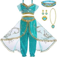 Achetez DiULi Costume de princesse Jasmine pour filles,Deguisement de Princesse Jasmine avec Accessoires de Bandeaux et colliers, Aladdin Costume pour filles Noël Halloween Anniversaire Fête Cosplay,120CM : Déguisements : Amazon.fr ✓ Livraison gratuite possible dès 25€