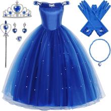 Eleasica Robe de Soirée Fille Princesse Cendrillon Robe de Princesse Elsa Reine des Nerige Baguette Magique Couronne Déguisement pour Enfant Cocktail Mariage Anniversaire Noël Carnaval, Bleu, 120 : Amazon.com.be: Jouets