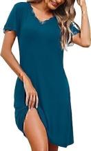 Demegimi Chemise de nuit à manches courtes pour femme Chemise de nuit en coton Courte Dentelle Robe de nuit d'été S-3XL, Turquoise., XL : Amazon.com.be: Mode