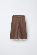 Pantalon en maille style jupe-culotte avec taille élastique et détail de dentelle en bas.