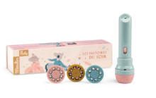 Placez l'un des disques d'histoire dans la lampe, allumez la lampe, tournez le disque et inventez ici votre propre histoire originale.