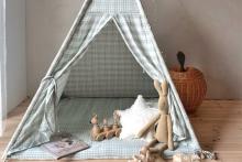 Parc en hêtre naturel de la marque belge Childhome avec matelas.