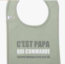 Bavoir "C'est papa qui commande..." - Vert de gris