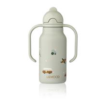 Cette gourde innovante et adaptée aux tout-petits, la bouteille KIMMIE, possède deux poignées faciles à manipuler sur le couvercle ainsi qu'une paille intégrée, et est fabriquée en acier inoxydable. Elle est conçue pour être facilement manipulée par les petites mains apprenant à incliner et boire de l'eau seules.Gourde