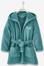 Eliot : Un peignoir de bain, le sien commence à être trop trop petit! Quelques recommandations à respecter : bleu (comme celui-là) ou jaune, en éponge pour sa sortie de douche et en taille 7 ou 8 ans. Que ce soit celui-là ou un autre, aucun souci!