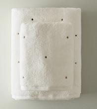 Serviette de bain blanche en coton, ornée d’étoiles colorées brodées.