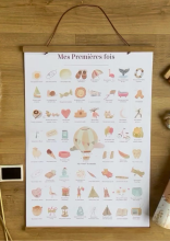 Affiche avec cadre made in France pour dater les premières fois de bébé avec un tampon. On la mettra comme décoration dans notre/sa chambre 😍