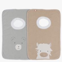 Lot de 2 grands bavoirs éponge Fluffy & Orso kaki/beige | Noukies