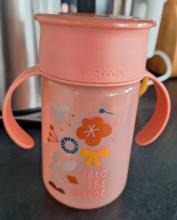 Suavinex, Tasse d'Apprentissage avec Disque Anti-Fuite, Magic Cup Rebord Antifuite 360°, à partir de 12 Mois, Anses Amovibles, avec Couvercle hygiénique, 340 ml, Forêt Rose.