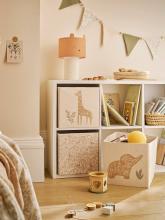 Un lot de 3 bacs pour ranger les jouets, les livres ou les vêtements de bébé. Un éléphant, une girafe et un motif jungle, ces bacs