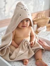 Cape de bain / Serviette à capuche Bébé et Enfant, avec coton recyclé sable -