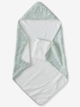 Cape de bain en gaze de coton couleur vert sauge avec motifs sur le thème de la forêt 🐻🌳