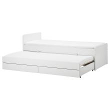 SLÄKT structure lit av lit tiroir + rangt, blanc, 90x200 cm Dormir seul peut parfois faire peur. Sous ce cadre de lit, on trouve un lit tiroir et deux tiroirs pour ranger oreillers et couvertures. Parfait si vos enfants partagent une chambre ou si leurs amis restent dormir.