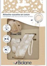 BIOLANE - Baby pacifier clip - For round pacifier - 100% cotton fabric - Beige - Cord attachment - Wooden and metal clip - Double safety & non-slip : Amazon.com.be: Baby Products