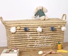 Découvrez l'idée de cadeau de naissance parfaite, le coffre à jouets en osier personnalisable. Coffre de rangement fabriqué au Maroc et personnalisé en France. Livraison rapide et dans le monde entier.