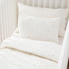Des petites oies tout mignonnes accompagneront bébé pour de douces nuits et de jolis rêves. La taie d'oreiller en gaze de coton, est une création La Redoute Intérieurs.