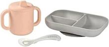 BÉABA, Set Vaisselle Silicone Repas Bébé, Coffret Repas d'apprentissage, 3 Pièces, Assiette compartimenté + Tasse + Cuillère, Silicone Saine et Durable, Compatible lave-vaisselle, Micro-onde, Rose : Amazon.com.be: Bébé et Puériculture