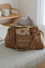 Un sac à langer de la marque belge Roseta Design brodé avec mon prénom, comme mon grand frère Auguste
