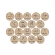 Nous avons trouvé ces belles étiquettes de rangement en bois à coller sur les bacs à jouets des filles! 🧸