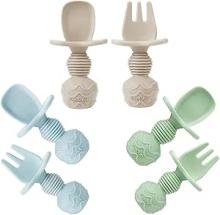 PandaEar Lot de 6 cuillères et fourchettes en silicone pour bébé - Contre les coques - Premiers ustensiles auto-alimentés pour les maisons de décantation LED de bébé à l'âge de 3 mois (bronzage : Amazon.com.be: Bébé et Puériculture
