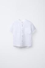 Chemise à col officier et manches courtes. Fermeture par boutonnage sur le devant. Poche plaquée sur la poitrine. Tissu 100 % lin.
