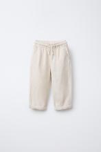 Pantalon droit avec taille élastique, cordons réglables devant et bas fini avec revers. Poches avant et poche plaquée dans le dos. Tissu avec 50 % de lin.