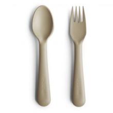 La fourchette et la cuillère de Mushie ont de larges poignées qui les rendent faciles à utiliser et à tenir.