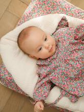 Apportez une touche d'élégance aux sorties de bébé avec ce nid d'ange en gaze de coton bio et tissu Liberty. Douillet et raffiné, il offre confort et style pour les premières sorties.