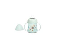 Flesje speciaal ontworpen om de overgang van zuigfles naar drinkbeker te vergemakkelijken. Een ergonomisch design met handgrepen zorgt ervoor dat de allerkleinsten dit flesje makkelijk kunnen vasthouden. De zachte silicone drinktuit is voorzien van een antileksysteem. De handgrepen en zuigspenen passen eveneens op ande