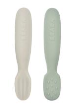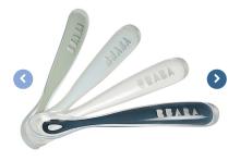 Ces cuillères en silicone ergonomiques de Béaba sont idéales pour les premières bouchées.